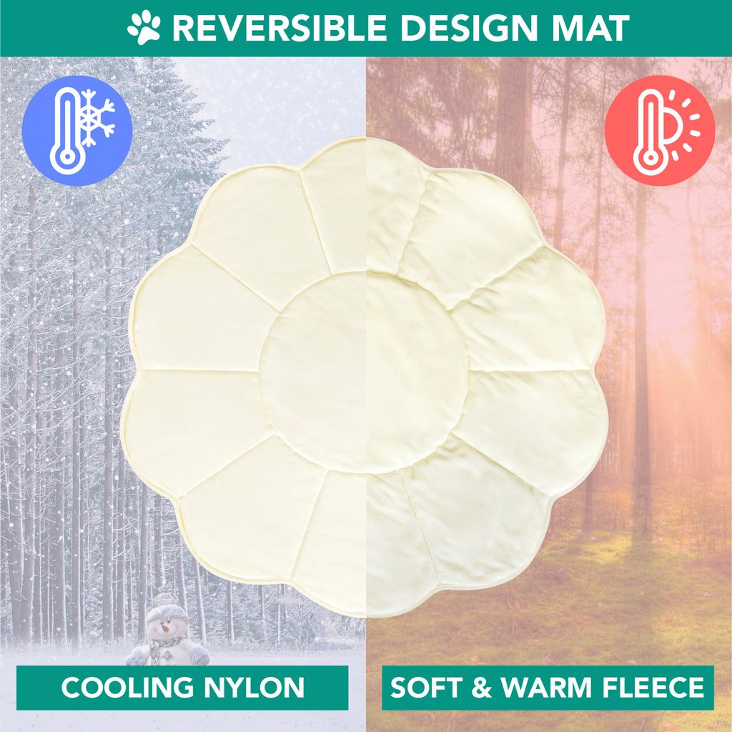 Keep your pet comfortable year-round with our reversible pet blanket mat. Featuring cute shapes, one side offers smooth nylon for cooling, while the other uses soft fleece for warmth. Simply flip it for cozy comfort in any season.
