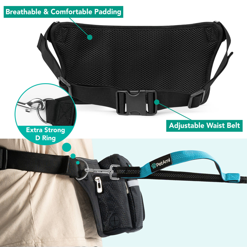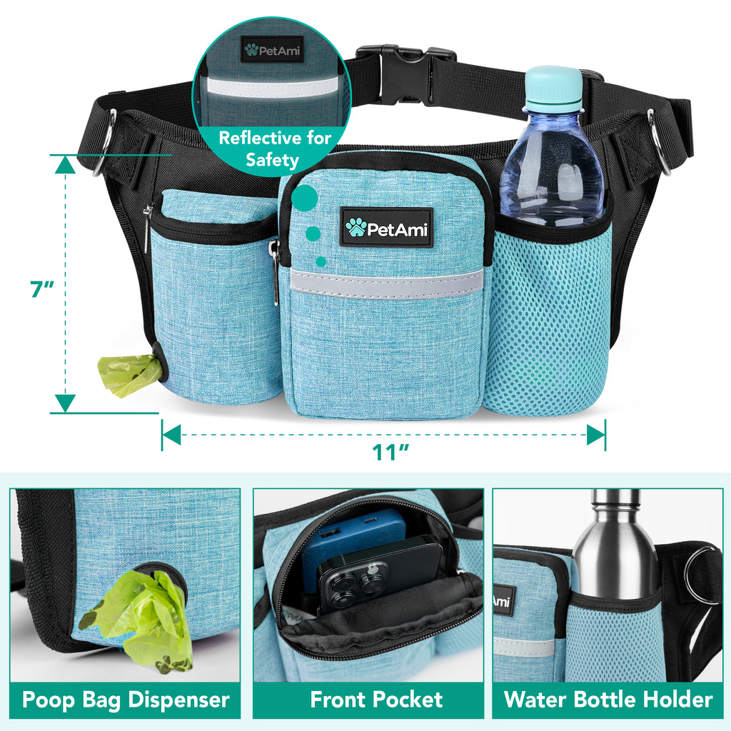 The perfect on-the-go dog leash bag for you and your pet, this hands free waist bag has everything to meet your every day dog walking and training needs.